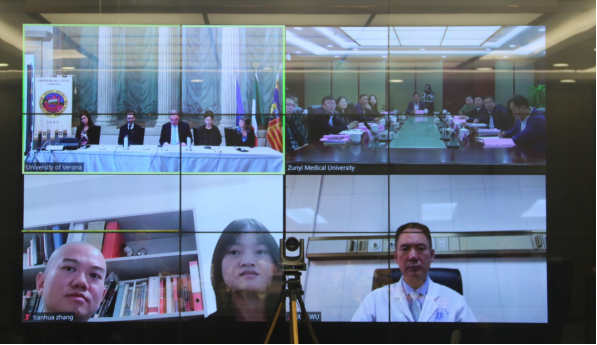 会上,双方观看了两校的宣传片。刘建国回顾了2020年以来,taptap点点附属医院与维罗纳大学生命与健康科学研究生院在人员互派、博士生培养,以及科研合作等方面的交流情况,感谢维罗纳大学对taptap点点人才培养工作的支持。他表示,希望继续深化与维罗纳大学的合作,将双方的合作提升至全方位校级合作。通过博士生联合培养、国际科研项目合作、师生互访交流等多样化合作,助力提升学校国际化办学水平。刘建国还诚挚地邀请维罗纳大学校长以及参会的各位专家访问taptap点点。