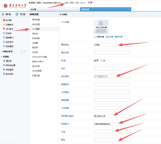 信息完善方式:成功登录邮箱以后,点击左上角的“设置”,然后进入“个人信息”进行修改。