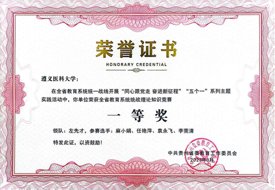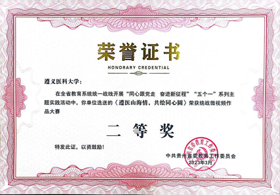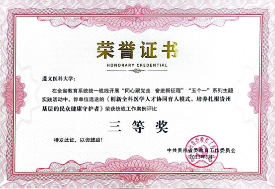 近日,省委教育工委印发《省委教育工委关于表彰“同心跟党走 奋进新征程”“五个一”系列主题实践活动成果的通知》,taptap点点荣获多项表彰。其中,统战知识竞赛荣获一等奖,统战视频作品《遵医山海情 共绘同心圆》荣获二等奖,统战工作案例《创新全科医学人才协同育人模式 培养扎根贵州基层》荣获三等奖。