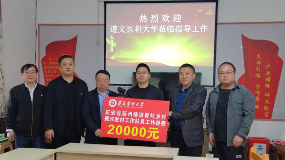 吴权围绕正安县新州镇现状、乡村振兴、人员管理、制度建设、安全治理、道路探索、产业发展情况、实际困难等8个方面进行了总结与交流。顶箐村书记邹小林汇报了顶箐村情况。驻村工作队队长蒲家志介绍了乡村振兴工作情况和取得成绩。随后,赵继锋代表学校向驻新州镇顶箐村乡村振兴工作队发放工作经费2万元。