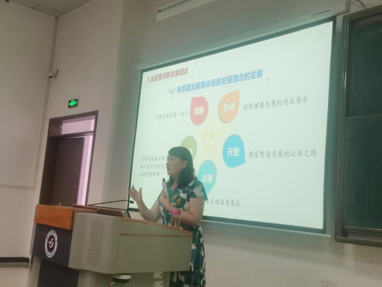 李春鸣副校长以“开创高质量发展新局面”为主题,从“关系全局的首要任务”“深刻丰富的内涵要求”“精准务实的战略部署”“跨越发展的遵医教育”四个方面展开,系统地讲述了发展是党执政兴国的第一要务,新时代中国经济发展的基本特征,就是由高速增长阶段转向高质量发展阶段。她强调,党的二十大报告指出,要加快建设高质量教育体系,加强基础研究和基础学科建设。她激励同学们面向世界科技前沿、面向人民生命健康,努力在创新上下功夫,弘扬科学家精神,涵养优良学风,营造创新氛围。