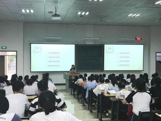 5月18日晚,学校副校长李春鸣在新蒲校区第三教学楼第25阶梯教室,为基础医学、全科医学、法医学专业20级本科学生讲授形势政策课。