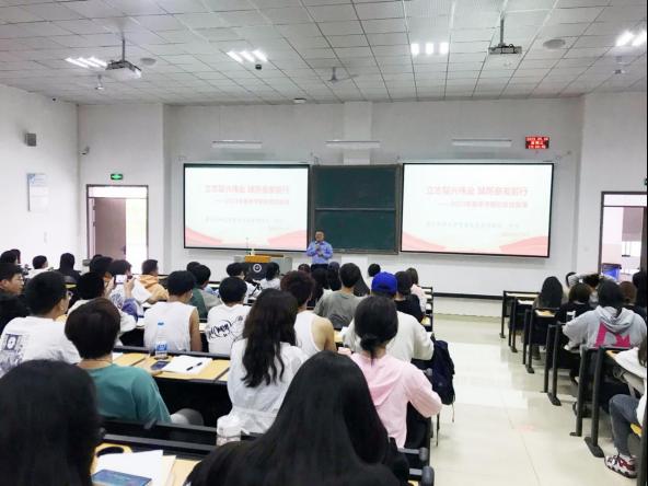 李均以“立志复兴伟业,踔厉奋发前行”为主题,从永载历史的伟大变革、引领复兴的宏伟蓝图、笃行不怠的战略定力三个方面展开讲授。李均指出,在新时代的伟大奋斗、实践进程中能取得举世瞩目的成就离不开每一代青年人的努力和奋斗,正是他们把自己的理想信念与国家、民族的命运紧紧地联系在一起,才推动了中华民族逐步走向复兴。他勉励大家,当前国家正处在发展的重要战略机遇期,青年应该积极投身到民族伟大复兴的征程中去,为强国建设、民族复兴贡献自己的青春力量。