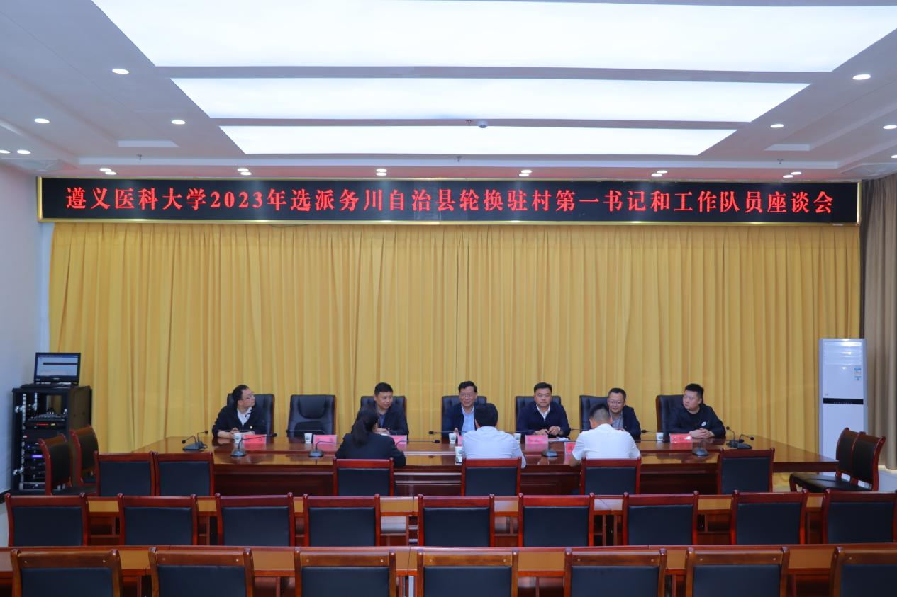 根据省委组织部统一安排部署,5月25日,学校党委副书记、校长刘建国带队赴正安县、务川县开展驻村第一书记和驻村工作队员轮换交接并调研指导乡村振兴驻村工作。学校党委委员、附属医院党委书记唐自力,学校党委委员、组织部长、统战部长郭宇亮及相关单位部门负责人一同前往。正安县委常委、组织部部长贾军,务川县委常委、组织部部长潘本善出席驻村工作座谈会。