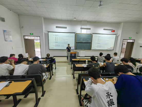 5月30日,学校党委副书记蔡善君在第三教学楼第25阶梯教室为管理学院2021级公共事业管理、应用心理学专业学生讲授思政课。管理学院党委书记张文辉,党委副书记、院长刘国琴,副书记彭正员,副院长魏来以及部分师生参加。