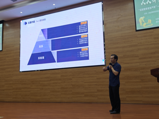讲座最后,与会人员共同观看了实验室安全事故警示教育宣传片。通过本次讲座,师生深刻认识到实验室安全事故的危害和严重性,深入了解实验室安全规范、实验室安全检查项目表和实验室气体气瓶安全、危险化学品法规等知识,进一步增强了实验室安全意识,提高了实验室安全管理水平。(审核;一审于欢、马诗贵,二审杨清玉,三审李均;撰稿:杨楠,摄影:张蓓、张鑫)