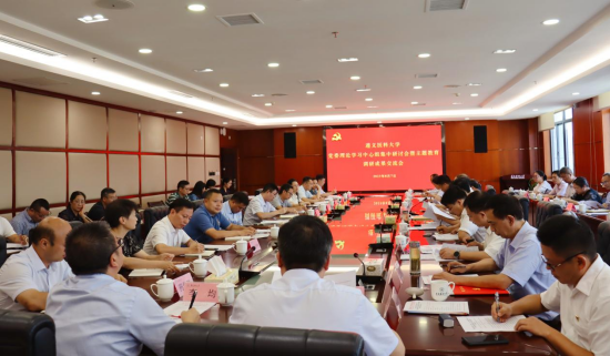 8月7日,学校召开党委理论学习中心组集中研讨会暨主题教育调研成果交流会。校领导刘建国、王子正、唐自力、赵继锋、刘代顺、龚其海,校党委委员郭宇亮、李均出席会议,省委第十七巡回指导组副组长李如晴一行到会指导。