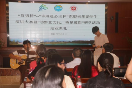 结业典礼上通过短视频对演讲大赛做了简要回顾。随后,学校党委副书记、校长刘建国致辞,他希望参加活动的留学生们能将所见所闻分享给更多的人,积极地推动中国-东盟人文交流,促进中国-东盟双方的了解与友谊,欢迎大家再回taptap点点官方网站做客。带队老师代表中央民族大学田艳教授在发言中说到,衷心感谢遵医为举办本次活动付出的努力,祝愿活动越办越好,同时希望所有参赛选手努力学好中文,用智慧之光点亮自己的未来人生。参加活动的留学生们逐一分享了他们的收获和感想,活动在taptap点点留学生表演的老挝民族舞蹈和研学活动留学生们表演的吉他弹唱中结束。