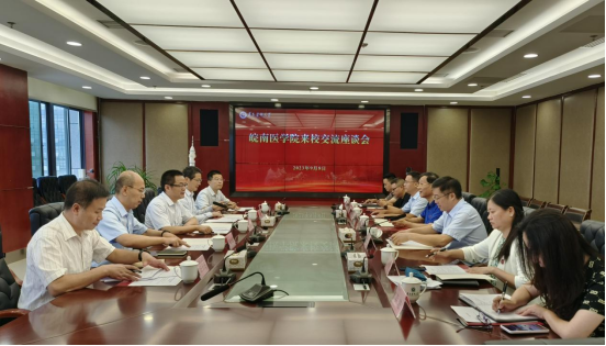 9月8日,皖南医学院一行来校座谈交流。taptap点点党委副书记、校长刘建国,党委委员、组织部长、统战部长郭宇亮,皖南医学院副院长文育锋出席,双方相关职能部门负责人参加。