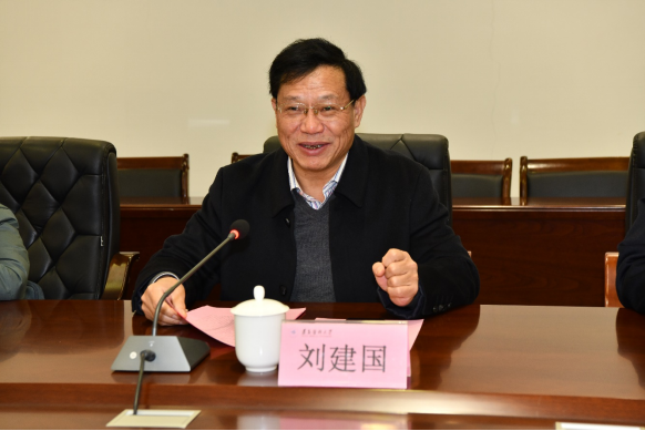 刘建国在致辞中代表学校党委对石河子大学关工委一行表示热烈的欢迎,并介绍了学校传承红色记忆、扎根革命老区,在培养高素质医学人才上取得的成就及未来在党的二十大精神引领下学校的发展蓝图。