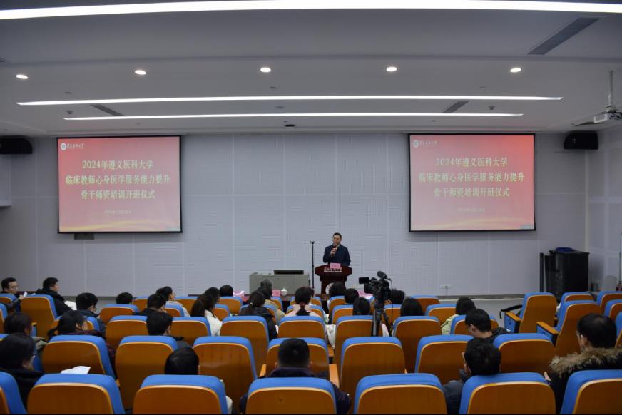 为提升临床教师的心身医学服务能力和教学水平,12月26日至27日,学校在新蒲校区图书馆一楼3号多功能厅举办2024年临床教师心身医学服务能力提升骨干师资培训班。学校党委委员、副校长陈永正在开班仪式上致辞,相关临床骨干教师代表参加。开班仪式由教育教学质量控制中心主任、教务处副处长邵珠建主持。