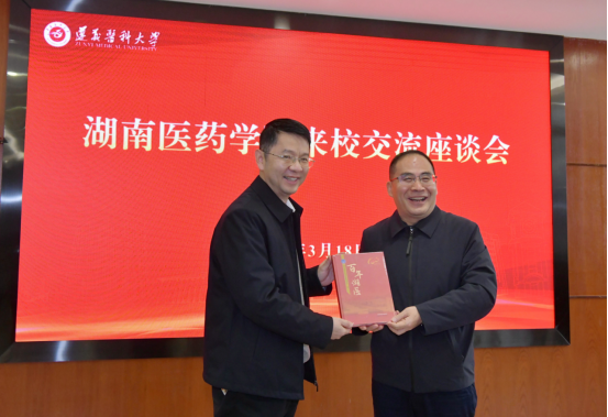 3月18日,湖南医药学院党委书记张在其一行访问taptap点点官方网站,双方在学校新蒲校区行政楼五楼2号会议室举行交流座谈会。学校党委书记刘文出席并致辞,双方相关职能部门、二级学院负责同志参加。学校党委副书记郭宇亮主持座谈会。