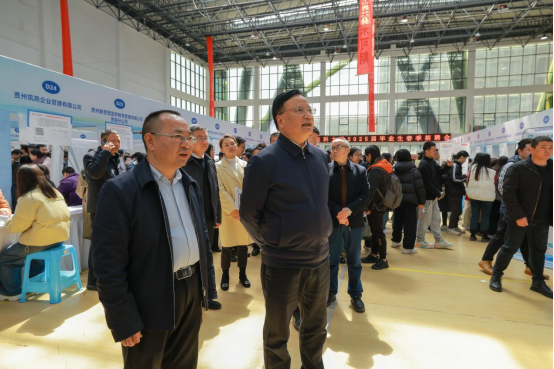 贵阳市政协党组书记、主席石邦林,学校党委书记刘文,党委副书记、校长龚其海,党委委员、副校长赵继锋来到招聘现场,与用人单位代表亲切交流,详细了解企业发展前景、人才需求及薪资待遇等情况,同时叮嘱相关部门要切实做好服务,并鼓励应聘学生响应国家号召,把握就业机遇,顺利开启理想职业征程。