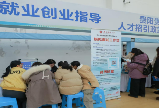 招聘会现场多措并举,多维护航,为毕业生提供能力提升、政策赋能在内的“一站式”就业指导支持;学校招生就业处开设简历一对一指导服务,累计完成简历优化近百余份;学校武装部工作人员现场解读 2025 年征兵政策,吸引众多学生驻足咨询;学校团委工作人员开展“西部计划”政策解读,积极引导大学生投身西部建设;贵阳市人才办工作人员提供在筑就业人才政策咨询,保障性住房政策咨询,吸引毕业生扎根贵阳贵安。