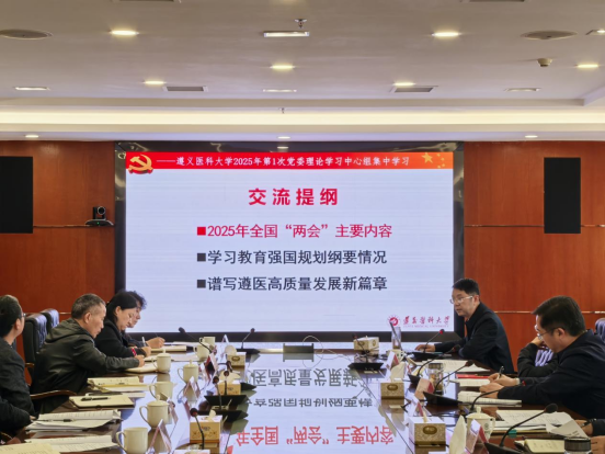 会议指出,2025年,是十年建成教育强国全面布局、高位推进之年,习近平总书记在看望参加政协会议的民盟民进教育界委员时强调,必须深刻把握中国式现代化对教育、科技、人才的需求,强化教育对科技和人才的支撑作用,进一步形成人才辈出、人尽其才、才尽其用的生动局面。在2025年政府工作报告中,也特别提出了“坚持创新引领发展,一体推进教育发展、科技创新、人才培养,筑牢中国式现代化的基础性、战略性支撑”。学校要认真学习领会全国两会精神,全面贯彻党的教育方针,落实立德树人根本任务,坚持把高质量发展作为教育的生命线,为助力教育强国和教育强省建设、奋力推进中国式现代化作出更多遵医贡献。