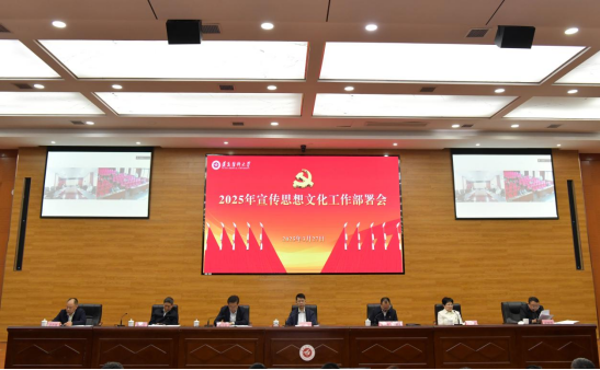 学校党委委员、副校长赵继锋从践行理论武装“主责任”、落实思想引领“主任务、筑牢意识形态“主阵地”、夯实对外宣传“主矩阵”、搭建文明校园“主载体”、培养宣传文化“主力军”六方面对学校2024年宣传思想文化工作情况作了回顾和总结,并对2025年宣传思想文化工作作全面部署:一是持续深化党的创新理论武装,坚持不懈用习近平新时代中国特色社会主义思想铸魂育人;二是持续深入抓好思想政治教育,落细落实立德树人根本任务;三是落实意识形态、网络意识形态和网络安全工作责任制,织密扎牢校园安全“防护网”;四是创新宣传内容形式,加强全媒体传播;五是加强党的全面领导,坚持党管宣传、党管意识形态、党管媒体。