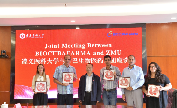 6月3日,古巴生物医药集团高级研究员Nuñez Figueredo Yanier一行5人来校交流并在新蒲校区行政楼五楼2号会议室举行座谈会。党委副书记、校长龚其海致辞,党委学校办公室、科技处、对外合作交流处、药学院负责人及相关人员参加。