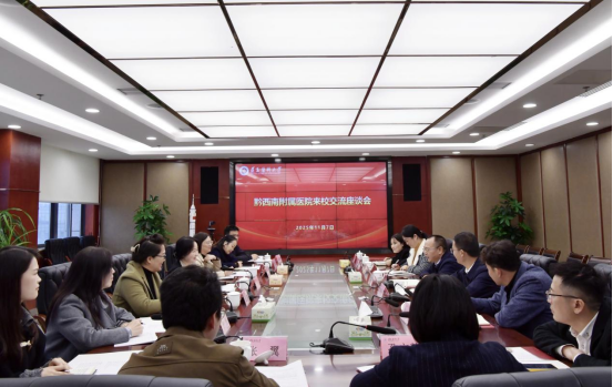 11月7日上午,黔西南州人民医院党委副书记、院长白宁艳一行来校交流,并在新蒲校区行政楼六楼3号会议室举行座谈会。学校党委副书记、校长龚其海致辞,双方相关职能部门负责人参加。会议由学校党委常委、副校长陈永正主持。