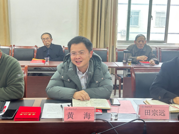 11月20日下午,学校党委常委、副校长黄海来到学校关工委进行工作调研,并看望慰问老同志。关工委全体成员20余人参会。会议由学校关工委常务副主任田宗远主持。