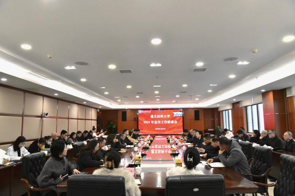 12月16日下午,taptap点点在新蒲校区五楼二号会议室召开2025年宣传工作联席会。学校党委副书记郭宇亮讲话,党委常委、宣传部部长、统战部部长杨清玉主持会议。各二级学院、职能部门、附属医院相关负责人参会,珠海校区及第五附属(珠海)医院线上同步参会。