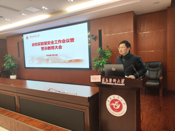 1月12日,全校实验室安全工作会议暨警示教育大会在新蒲校区行政楼一楼多功能厅召开。校党委常委、副校长黄海讲话,各二级单位、相关职能部门、实验室负责人及安全员等参会,珠海校区同步视频参会。