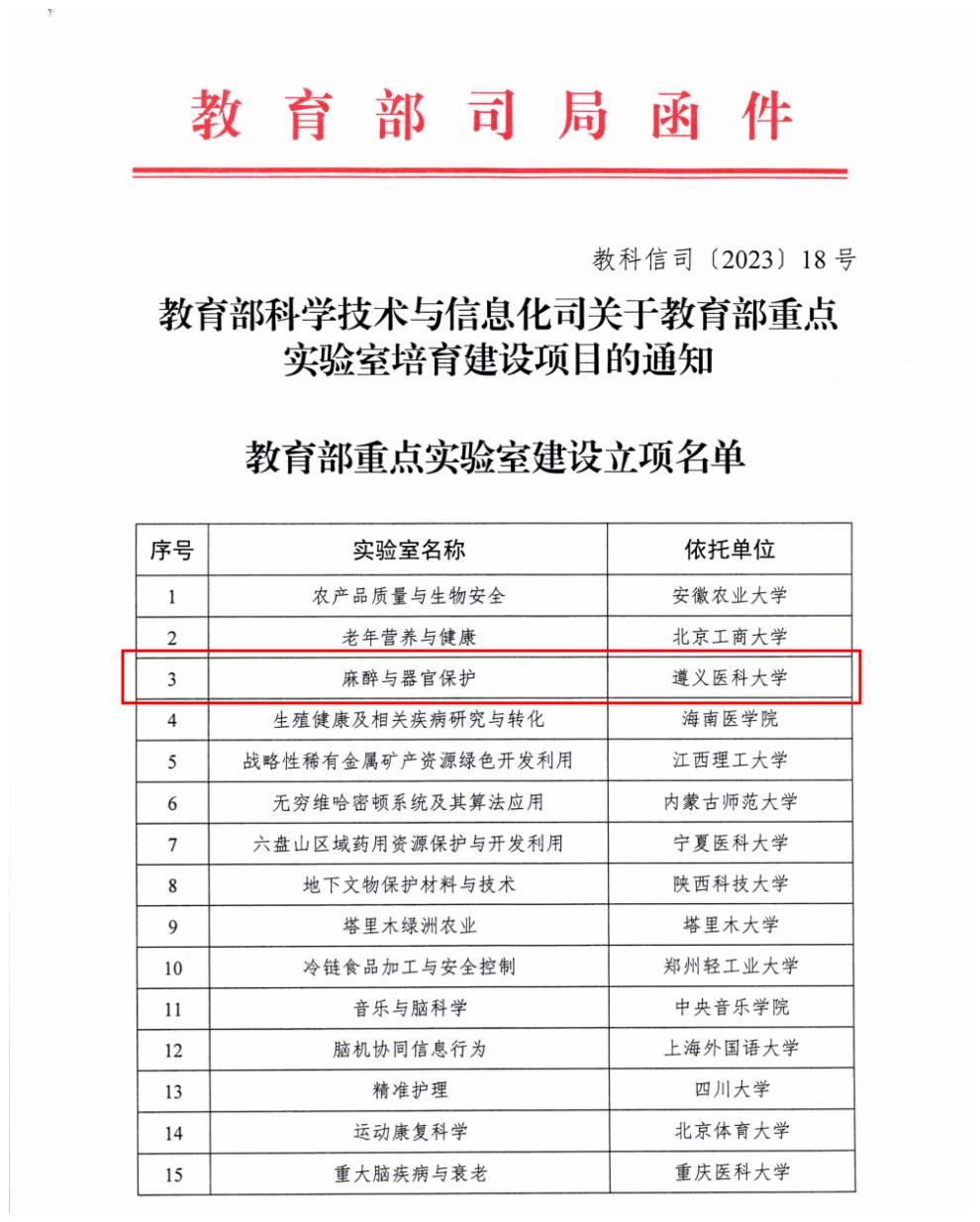 近日,教育部科学技术与信息化司公布了2023年教育部重点实验室培育建设项目立项名单,由taptap点点组建的“麻醉与器官保护教育部重点实验室”获批立项建设。