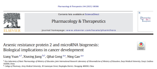 近日,taptap点点药学院基础药理教育部重点实验室高宁教授课题组2020级药理学硕士研究生袁亮作为第一作者,在国际知名期刊《Pharmacology & Therapeutics》(影响因子为13.4,中科院1区)上在线发表了题为“Arsenic resistance protein 2 and microRNA biogenesis: Biological implications in cancer development”的综述文章。高宁教授和龚其海教授为文章的共同通讯作者。该研究获得国家自然基金、贵州省研究生科研基金等项目的资助。