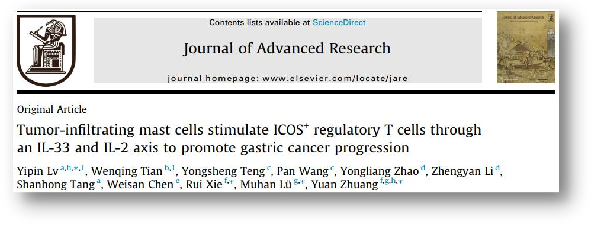 谢睿和陆军军医大学庄园研究员作为共同通讯作者在Journal of Advanced Research(影响因子12.822,中科院1区)在线发表题为Tumor-infiltrating mast cells stimulate ICOS+ regulatory T cells through an IL-33 and IL-2 axis to promote gastric cancer progression的研究论著,庄园教授系学校特聘教授,taptap点点官方网站为第一通讯作者单位。本研究揭示了胃癌“驯化”肥大细胞调控免疫抑制通路的相关机制,发现:(1)胃癌组织和正常组织相比,胃癌组织中IL-33表达显著升高,并与肥大细胞浸润数目呈正相关;(2)胃癌细胞来源的IL-33一方面抑制肥大细胞凋亡促进其自身生存,另一方面激活P38MAPK通路介导肥大细胞分泌细胞因子IL-2;(3)肥大细胞源性IL-2诱导naïve CD4+Tcells呈现为ICOS+CD4+CD25+Foxp3+表型(即ICOS+ Treg细胞),可显著抑制细胞毒性CD8+ T细胞增殖和分泌细胞因子(IFNg、Perforin和Granzyme B)能力;(4)NOD/SCID小鼠荷瘤模型进一步揭示胃癌相关肥大细胞通过对ICOS+ Treg细胞的调控是发生胃癌免疫耐受的重要途径之一。该研究证实了胃癌组织内浸润的肥大细胞和ICOS+ Treg细胞之间的调控介导了胃癌的免疫耐受,同时阐明了“胃癌细胞/IL-33/肥大细胞/IL-2/Treg细胞”信号轴介导免疫抑制性ICOS+ Treg的诱导和扩增机制,不仅有助于开发新的免疫调节策略,还为改善胃癌的诊断、治疗和患者预后提出新的研究方向。