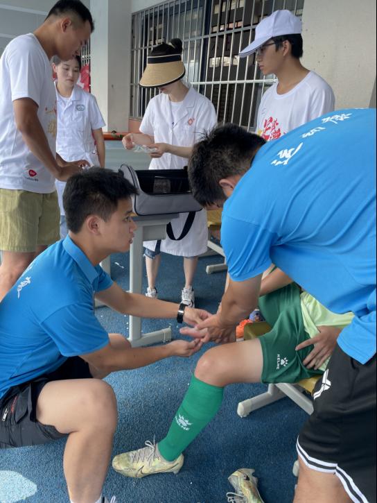 本次比赛分为“国脚传承组”和“校园足球组”两个竞赛组别,国脚传承组由孙继海、马明宇、姚夏、曲波等8位前国脚成立的青训俱乐部组成,校园足球组由澳门、上海、珠海、重庆、怒江、延安、贵阳、遵义组队参加。为全面保障赛事的顺利进行,体育与健康学院精心准备,选拔了12名运动康复精英队成员及7名运动康复专业志愿者,全程参与四个竞赛场地的赛后康复、赛中医疗辅助以及赛事志愿服务,受到了赛事组委会,参赛运动员、教练员的一致赞许与认可。