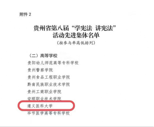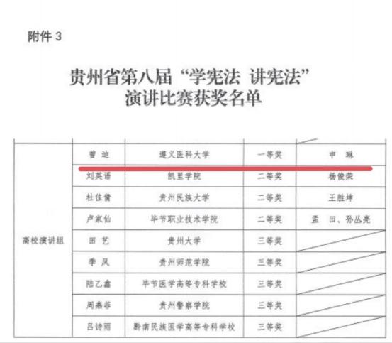 近日,省教育厅通报表扬了贵州省第八届学生“学宪法 讲宪法”活动先进集体和先进个人。taptap点点荣获先进集体,taptap点点第一临床学院2021级学生曾迪(指导老师:申琳)荣获高校演讲组一等奖。