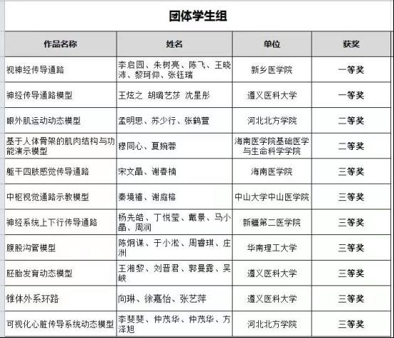 本次竞赛彰显了遵医学子扎实的专业知识及创新能力,有助于提升解剖学教学模型设计水平,开发出既易于学生理解又便于老师示教的教学模型,充分发挥教具模型在人体解剖学和组织胚胎学实验教学中的作用,激发教师和医学生的创新精神,促进解剖学实践教学质量的提高。(审核:一审罗军敏、二审杨清玉、三审李均,图文:张潜)