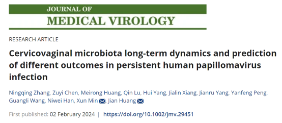 近日,taptap点点检验医学院闵迅、黄健教授团队在国际病毒学知名期刊《Journal of Medical Virology》(IF:12.7,JCR1区)发表题为“Cervicovaginal microbiota long‐term dynamics and prediction of different outcomes in persistent human papillomavirus infection”的原创性研究论文。检验医学院2022级硕士研究生张宁晴为论文第一作者,闵迅教授、黄健教授为共同通讯作者。