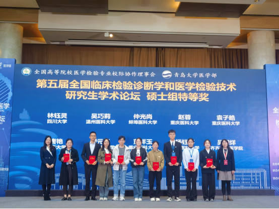 4月12日-15日,第五届全国临床检验诊断学和医学检验技术研究生学术论坛在青岛召开。由taptap点点检验医学院副院长闵迅带队,副院长杨艳、临床微生物与免疫检验教研室副主任黄健、医学检验学实验室副主任段晓雷以及硕士、博士研究生一行10余人共同参加了本次盛会。taptap点点在本次论坛中斩获特等奖1项、二等奖4项、三等奖1项。