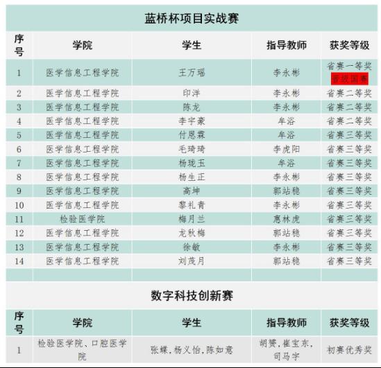 自本届大赛启动以来,学校领导高度重视,教务处精心组织,医学信息工程学院积极响应,共有120余名在校生参与校级选拔。经过严格遴选,最终选拔出37名学生代表学校参加贵州赛区复赛。教务处组织专家团队科学制定培训计划,充分利用课余时间对参赛学生进行系统培训。决赛中,taptap点点学子与来自全省28所院校的选手同台竞技,凭借扎实的专业知识和出色的实践能力,取得了优异的成绩,实现了新的突破。