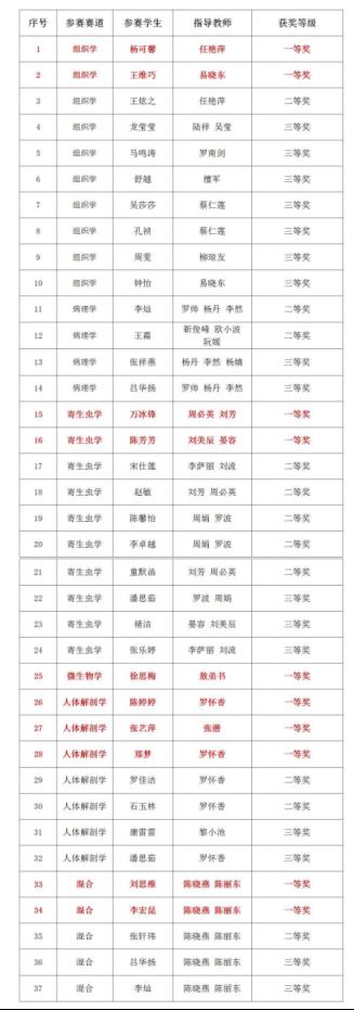 第二届全国高等医学院校大学生形态学读片和人体解剖标本辨识技能大赛获奖名单