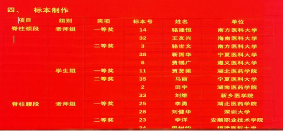 在当日举行的中国解剖学会第四届现场标本制作大赛中,taptap点点人体解剖学教研室实验技术员费锡广历时3个小时,现场制作脊柱颈段结构,经专家现场评审,从40多位来自全国各医学院校的参赛选手中脱颖而出,获得比赛教师组的二等奖。