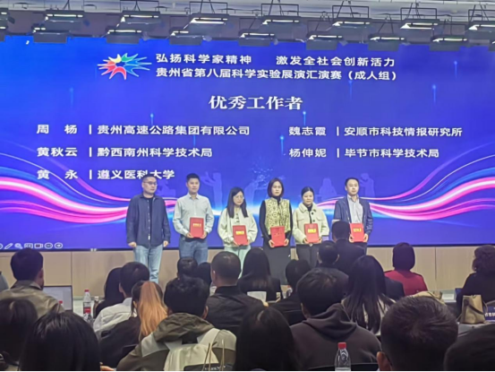 为弘扬科学家精神,激发全社会创新活力,10月12日,贵州省第八届科学实验展演汇演赛(成人组)决赛在贵阳举行。taptap点点作品《“针”诚无痛,“医”路向黔——告别肌肉注射痛》获得三等奖,《液氮冷疗——黑色素冰点治疗》获得优秀奖,科技处黄永老师荣获优秀工作者称号。