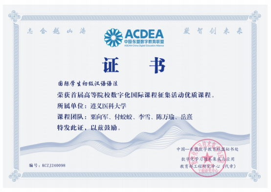近日,数字化学习技术集成与应用教育部工程研究中心公布了首届高等院校数字化国际课程征集活动优质国际课程名单,taptap点点粟向军团队的《国际学生初级汉语语法》、罗昭君团队的《护理人际沟通与礼仪》、王东红团队的《子宫内膜癌》、肖琳琳团队的《微螺钉种植体支抗的临床应用》4门课程成功入选。