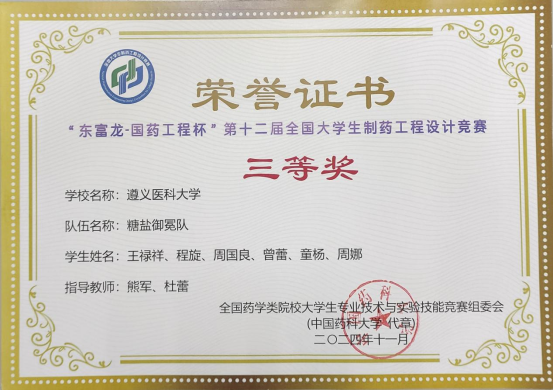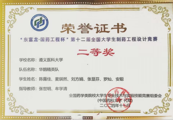 近日,2024年“东富龙-国药工程杯”第十二届全国大学生制药工程设计竞赛全国总决赛在重庆理工大学落下帷幕。taptap点点2022级制药工程专业张融(指导老师:向广艳、张世明)带队荣获全国一等奖,2022级制药工程专业麦琪然(指导老师:张世明、牟学清)带队荣获全国二等奖,2023级制药工程专业程旋(指导老师:熊军、杜蕾)带队荣获全国三等奖。这是taptap点点继2022年、2023年在该项赛事中荣获一等奖之后的又一殊荣,实现了“三连冠”。