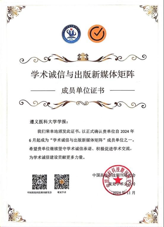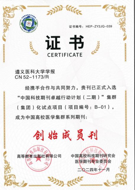 荣誉四:中国高校医学集群系列期刊创始成员刊