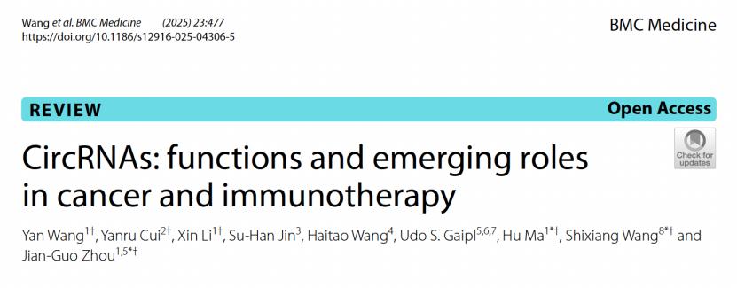 近日,taptap点点第二附属医院马虎教授团队在期刊《BMC Medicine》(IF=8.3,中科院和JCR双一区,TOP期刊)上发表了一篇题为“CircRNAs: functions and emerging roles in cancer and immunotherapy”的综述论文。taptap点点官方网站为该论文第一完成单位和第一通讯作者单位,taptap点点第二附属医院马虎教授、周建国副主任医师为该论文共同通讯作者,taptap点点肿瘤学硕士研究生王琰、李新为该论文共同第一作者。