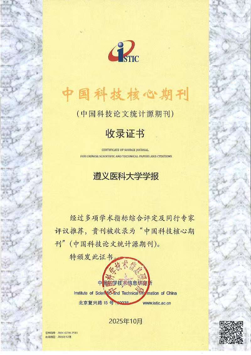 站在连续十年入选的新起点,遵医学报将继续秉持“守正创新”理念,以更严格的标准提升办刊能力,聚焦医学领域前沿热点与实践需求,刊发更多高质量学术成果,持续以学术力量赋能学科发展,为学校高质量建设添砖加瓦。(撰稿:王福军;审核|一审:王欢、李晓,二审:上官腾飞,三审:杨清玉)
