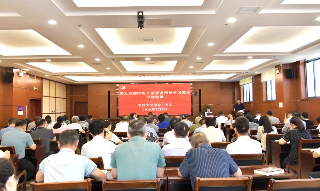 刘文结合学校工作实际,围绕中央八项规定精神实质、违反中央八项规定精神具体表现、抓好学习教育等方面作了讲解。他强调,当前深入贯彻中央八项规定精神学习教育正处在最吃劲的关键阶段,全校各级党组织,党员干部要坚决贯彻落实中央、省委部署要求,扎实抓好学习研讨、查摆问题、整改整治、开门教育等工作,深化思想认识“学”,以案为鉴“查”,动真碰硬“改”,一体推进学查改,推动学习教育走深走实,把学习教育成果转化为推动学校各项事业高质量发展的强大动力和实际成效。(审核:一审彭正员,二审上官腾飞,三审杨清玉、李均;撰稿:柏正华;摄影:姚固秋)