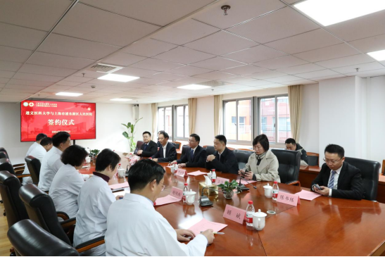 会上,陈永正详细介绍了学校的建校历史、临床成就、教育与科研成果、人才培养模式与成效,同时提及上海与遵义两地红色传承历史渊源,并表示此次教学签约能够加深两地深厚革命友谊,为贵州的医学生们提供更好的学习机会,共同促进医学事业发展。